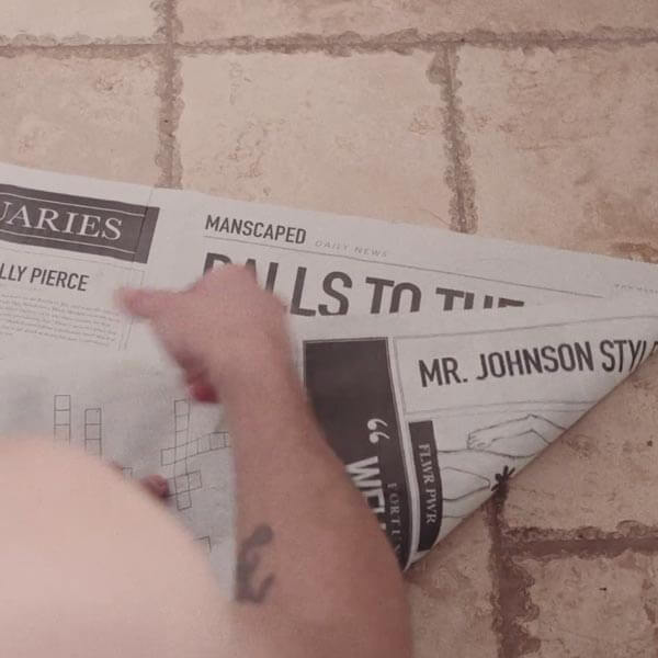 Unfold Magic Mat® and place it on the floor of your bathroom. Then firmly plant your feet on the outer edges of the disposable shaving mats to ensure your trimmings are properly caught on the mat. Once you are done, simply fold up all trimmings and neatly dispose.