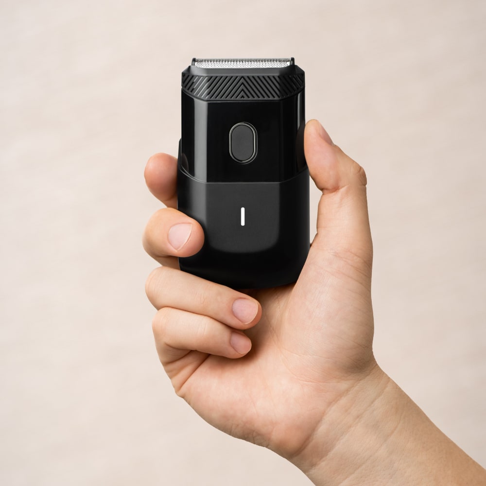 Need a touch-up away from home? Your chiseled jawline won't lose its luster thanks to our dual-action foil shaver, The Handyman™. Its compact design means you can toss it in your bag for easy grooming on the go.